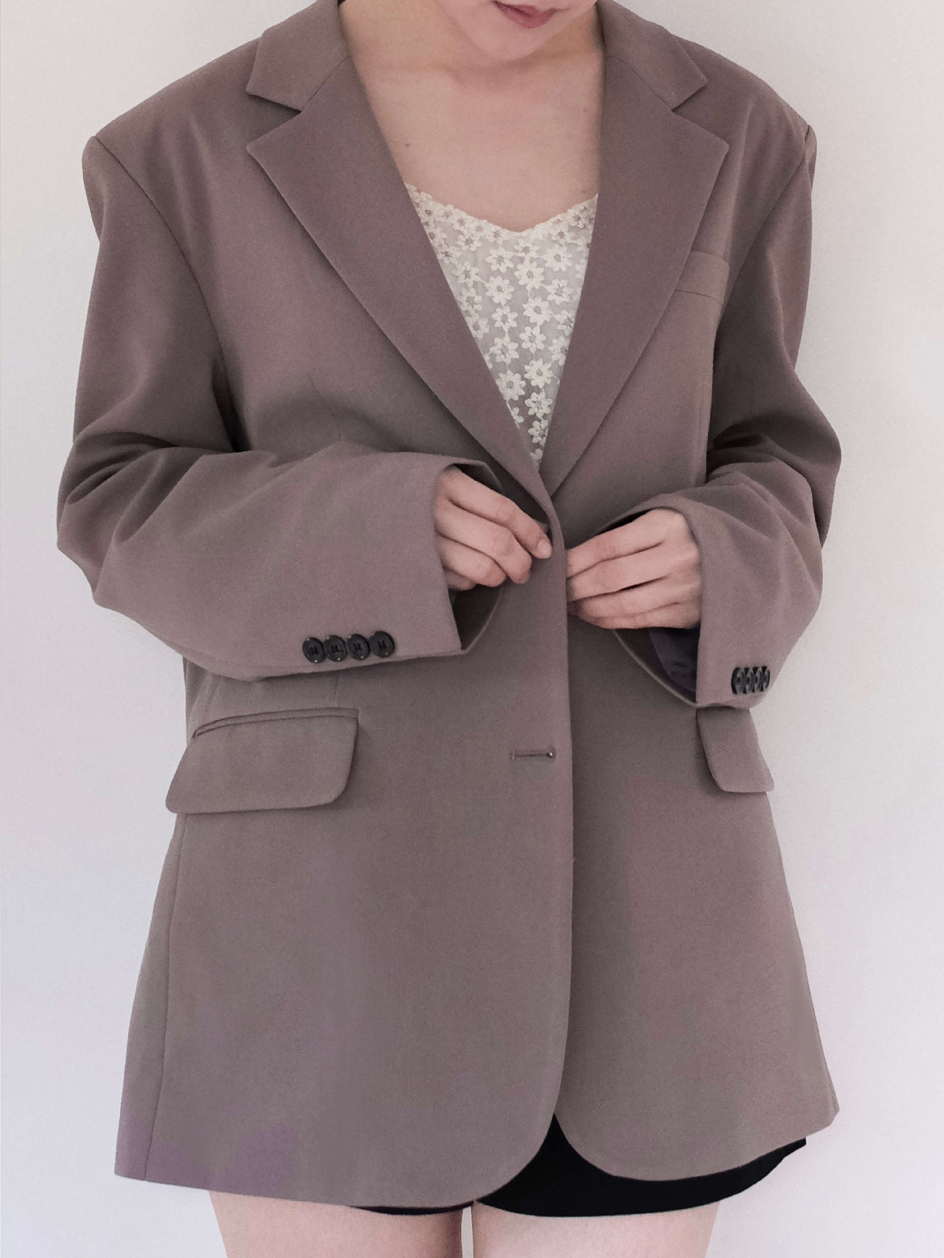 lightly padded with a drop-shoulder cut, this oversized blazer creates a clean, structured silhouette that drapes nicely.