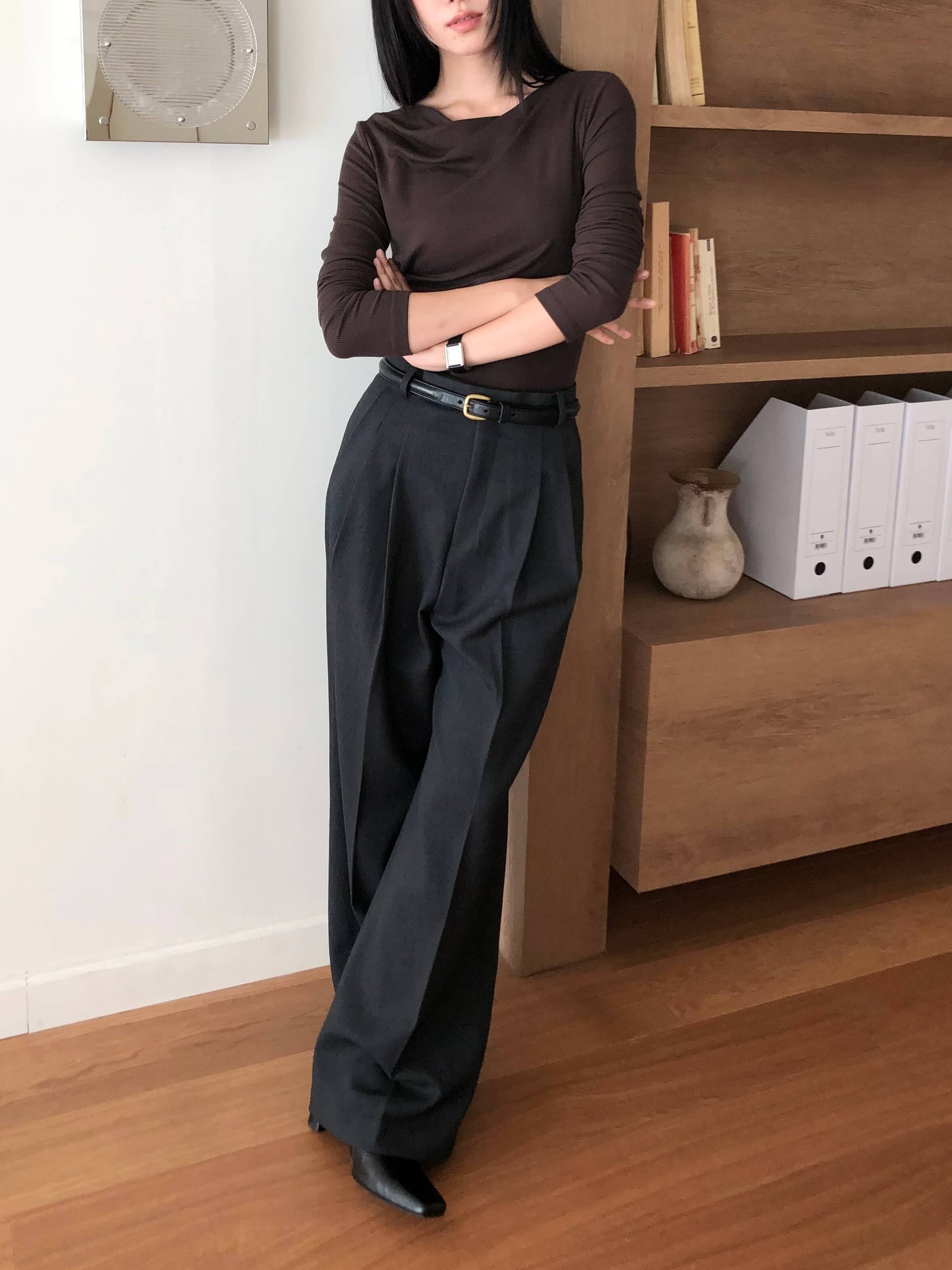 the suit-like fabric feels smooth to the touch, while the relaxed rise and hips make them comfortable to wear all day long.